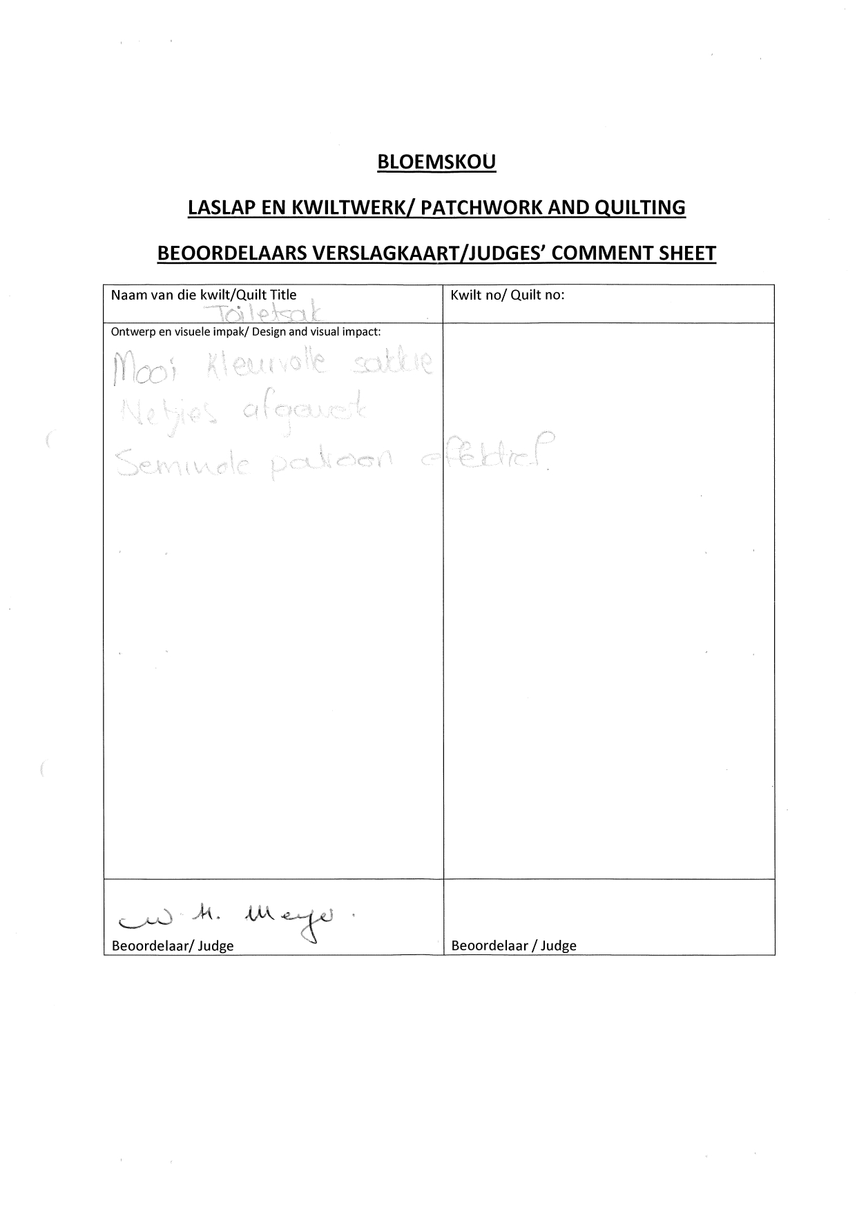 This class was presented during a National Quilting Day festival held at the local CUT in 2012 I think? Me and fellow quilter, Sonja Snyman attended one of the other classes and bought this kit.
