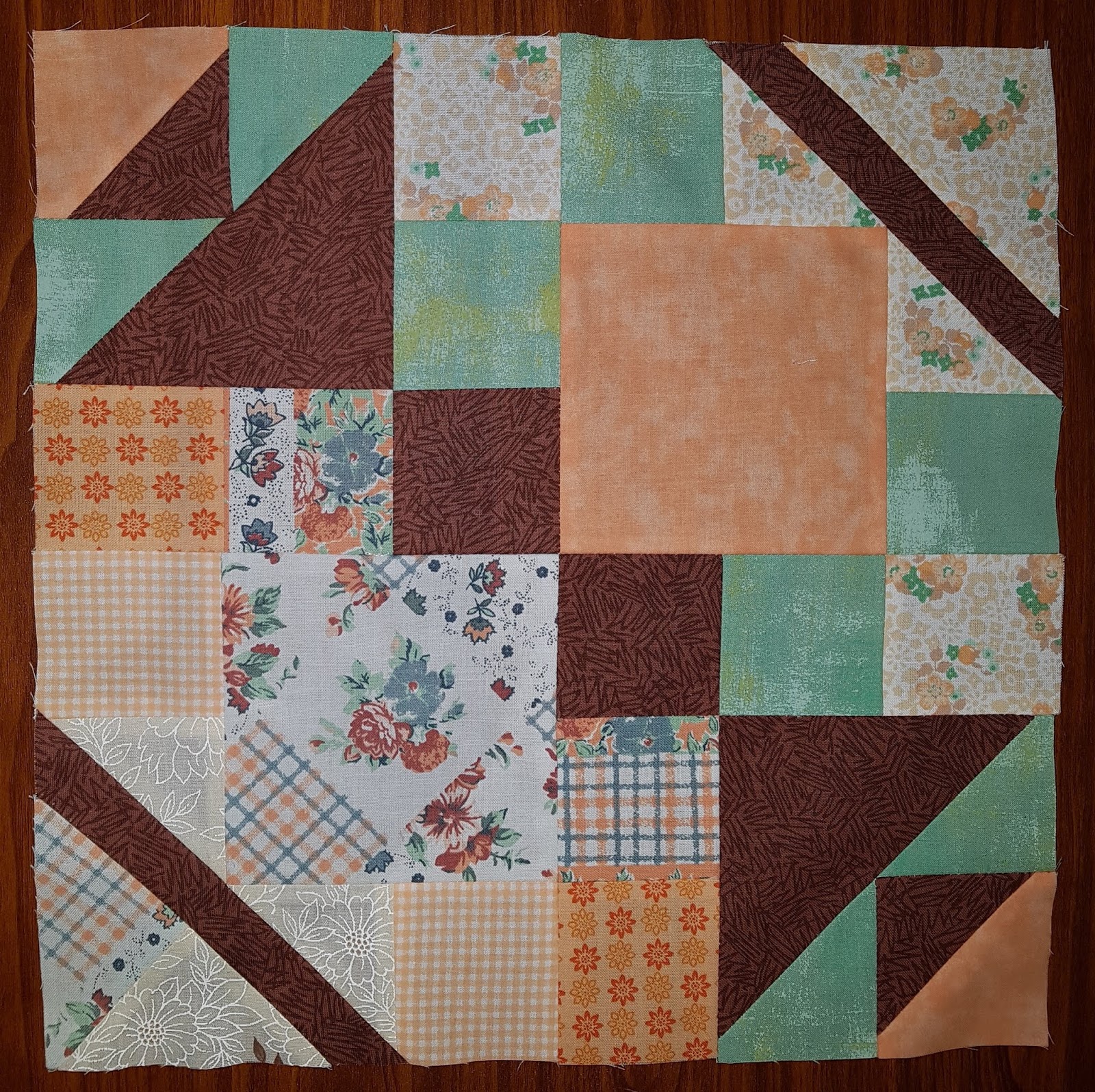 At our last meeting we received the pattern and started stitching the blocks together to form 12.5" blocks in batches of either 2, 4 or 8 identical one's thus reducing the 144 blocks to 36 in 8 variations.