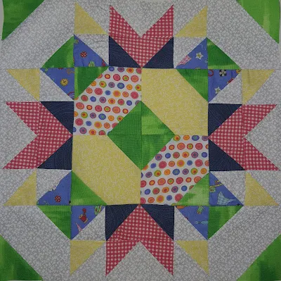 I had seriously fallen behind with this quilt between visiting the kids and being ill. Block 3 and 4 is done and I am busy with the borders. I am however having trouble getting a coordinating navy fabric for the outside border as I had only a fat quarter. Never new there are so many shades of navy until you start looking for a particular one...