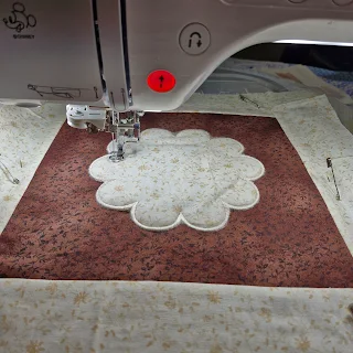 | All prepped and ready to go. For this stage, I only wanted to quilt the dark brown background. |